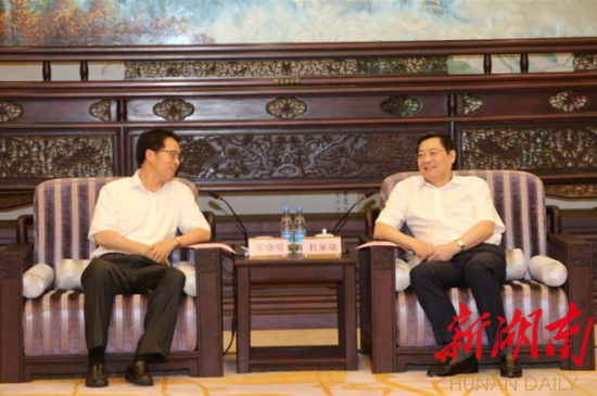 杜家毫代表省委、省人大常委会、省政府、省政协,感谢香港中联办长期以来对湖南经济社会发展给予的大力支持,并对考察团一行来湘表示热烈欢迎。他说,香港是湖南扩大对外开放的重要窗口和利用外资最主要的来源地,广大湘籍香港同胞为推介湖南、招商引资、搭建平台作了大量工作。当前,湖南正以新发展理念为指导,大力实施创新引领开放崛起战略,积极推进农业供给侧结构性改革,大力发展现代制造业和现代服务业、互联网产业等新兴产业,集中精力抓好脱贫攻坚和环境保护。希望香港中联办一如既往地关心支持湖南发展,助力提升湘港合作的层次和领域。希望香港湖南联谊总会利用好香港的独特优势,促进湖南更好地融入世界经济发展新格局。湖南将进一步优化营商环境, 欢迎广大企业家来湘投资兴业。